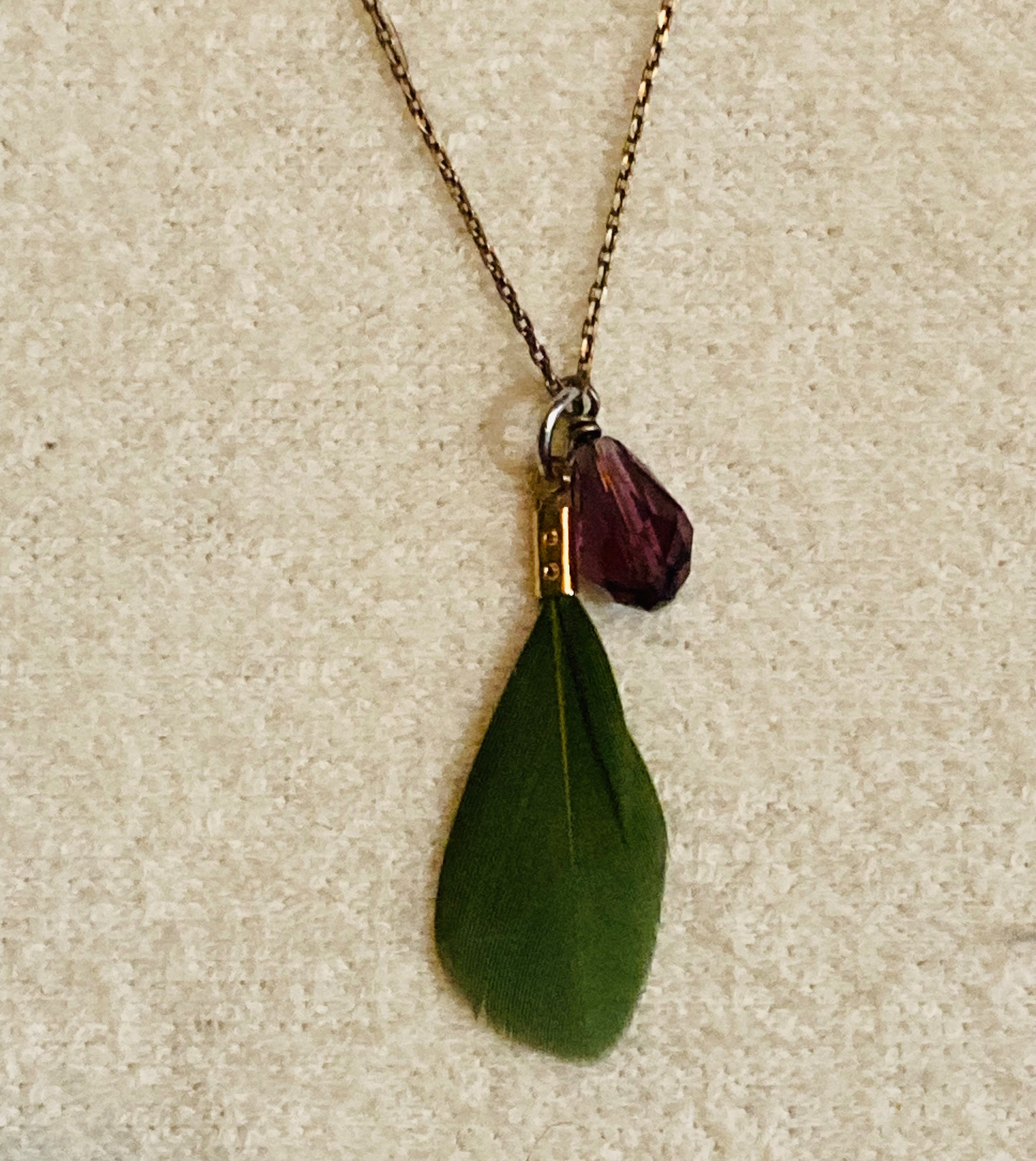 デッドストックのパーツとリアルフェザーを組み合わせたネックレス
