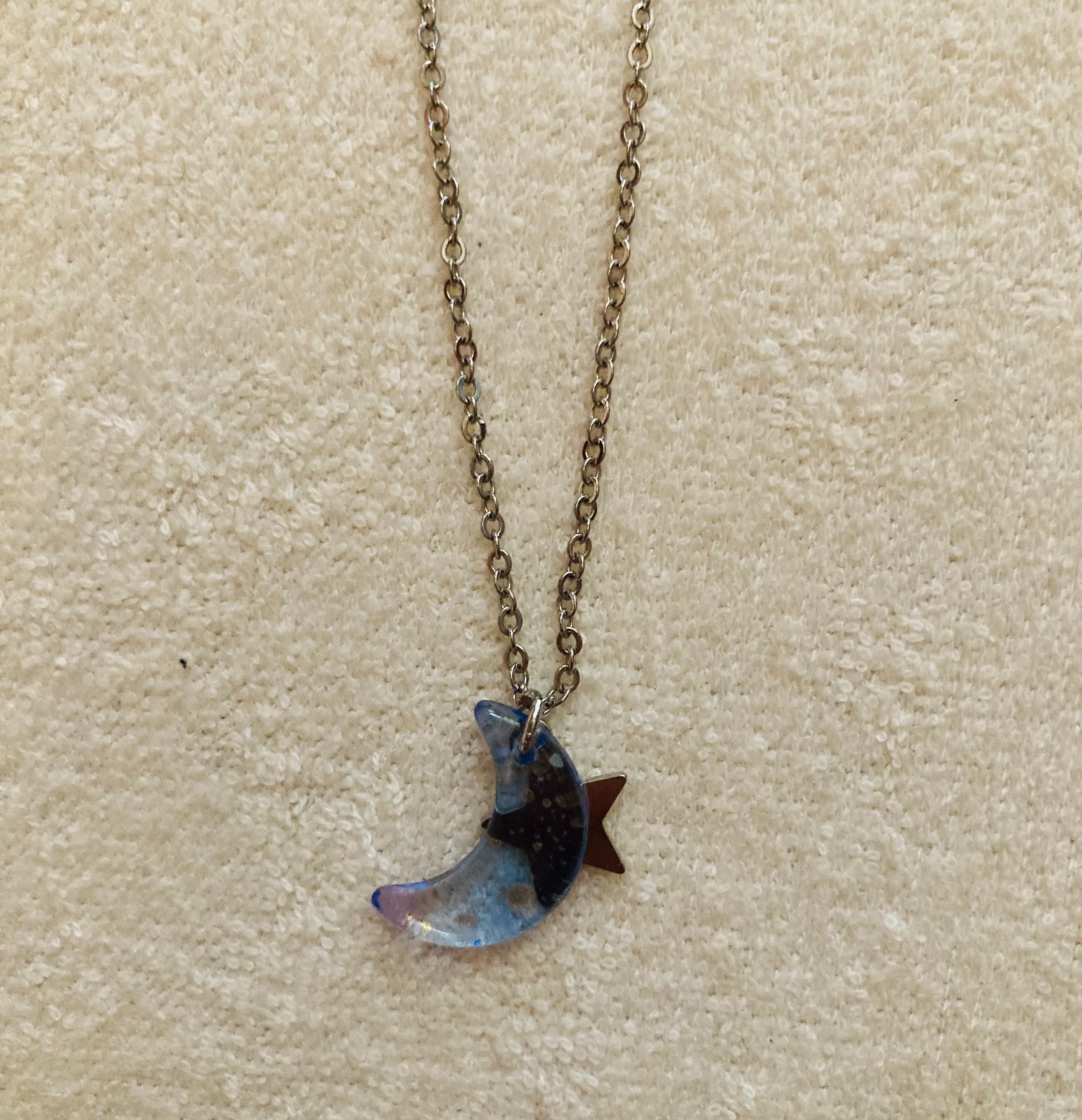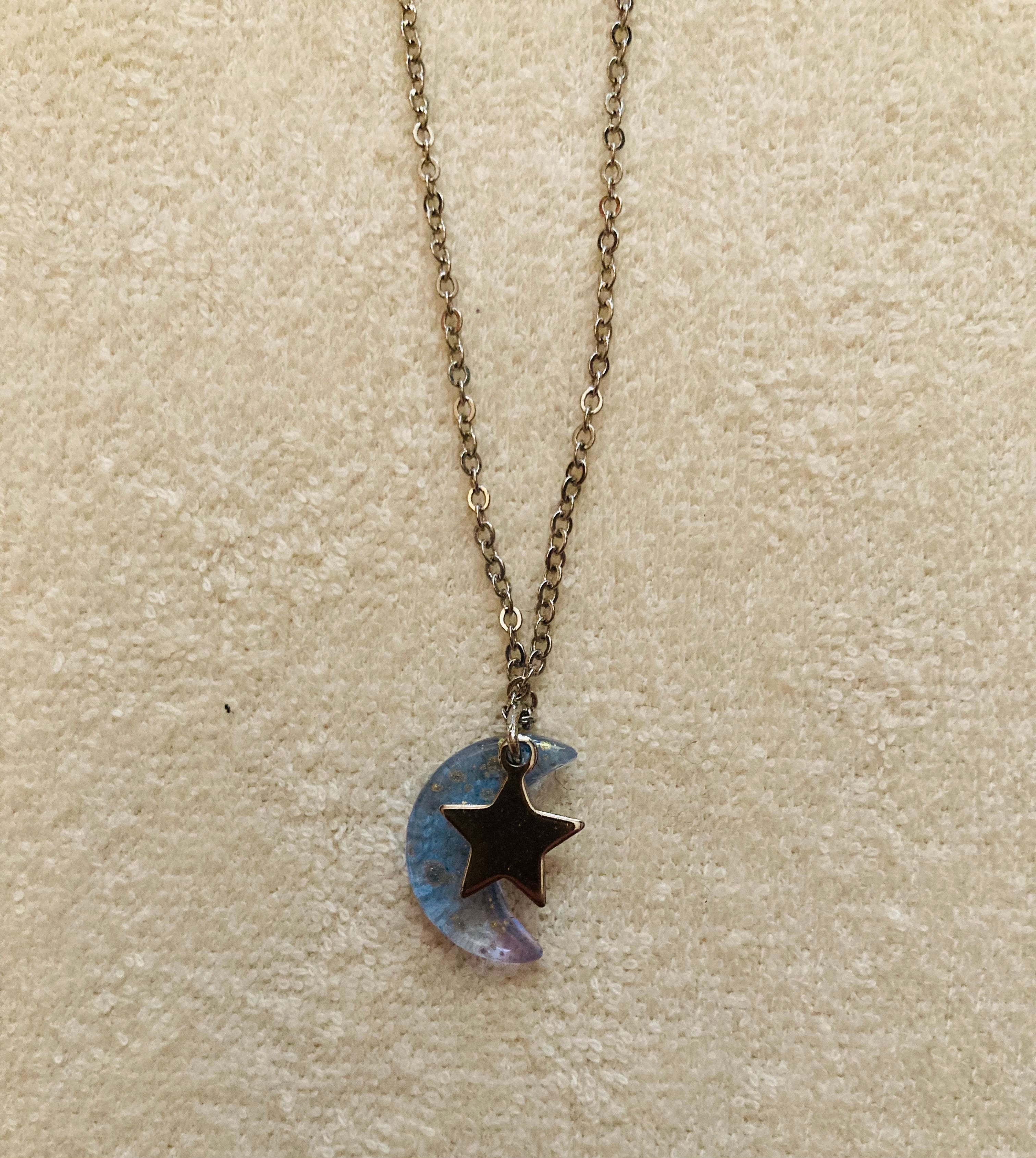 デッドストックの星と月のパーツを組み合わせたネックレス