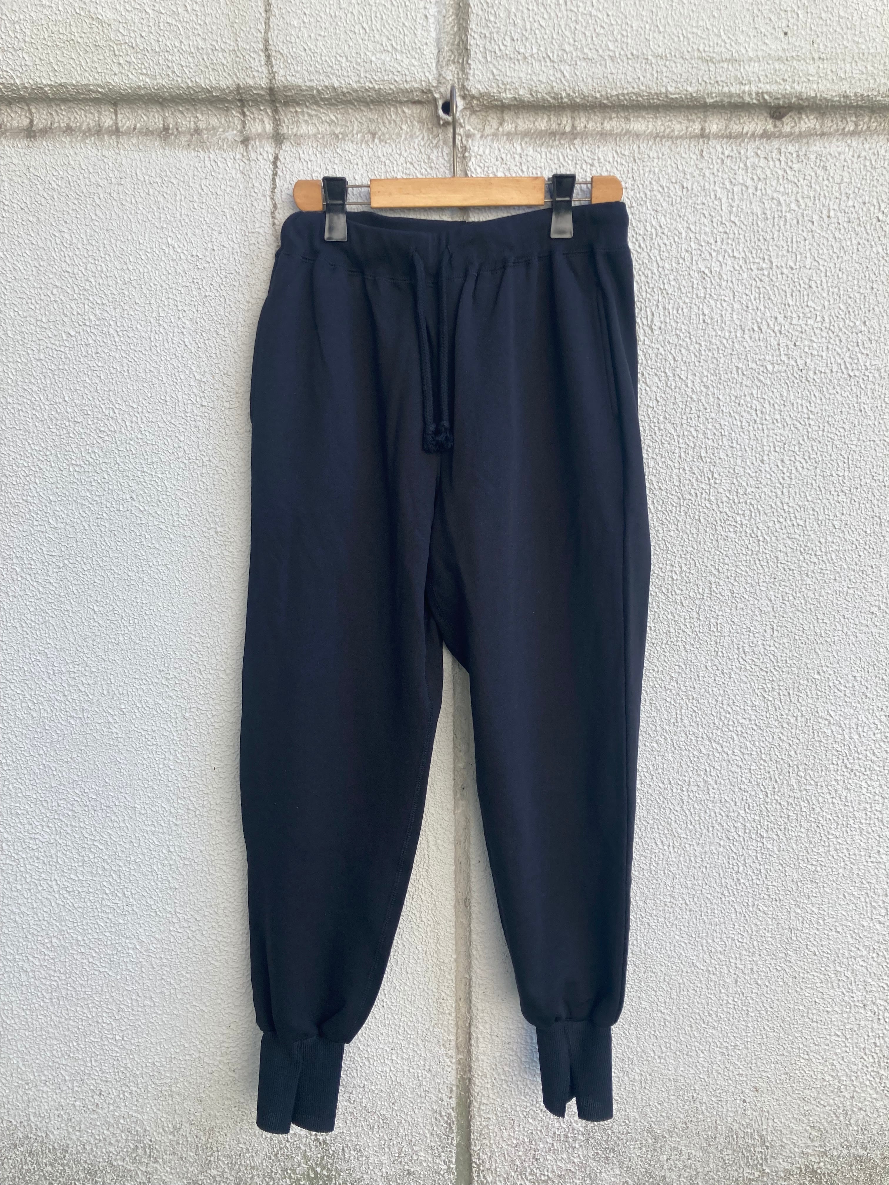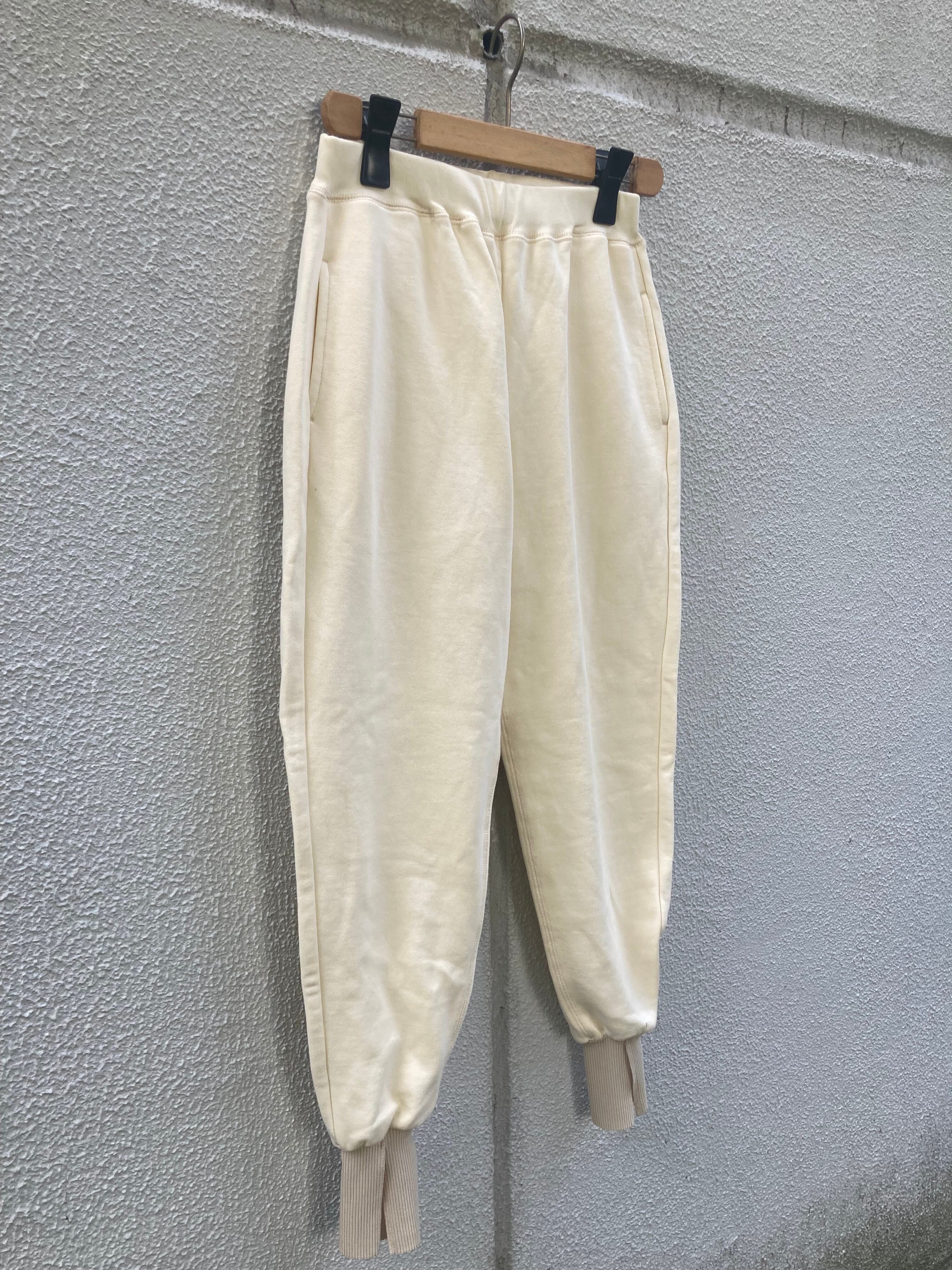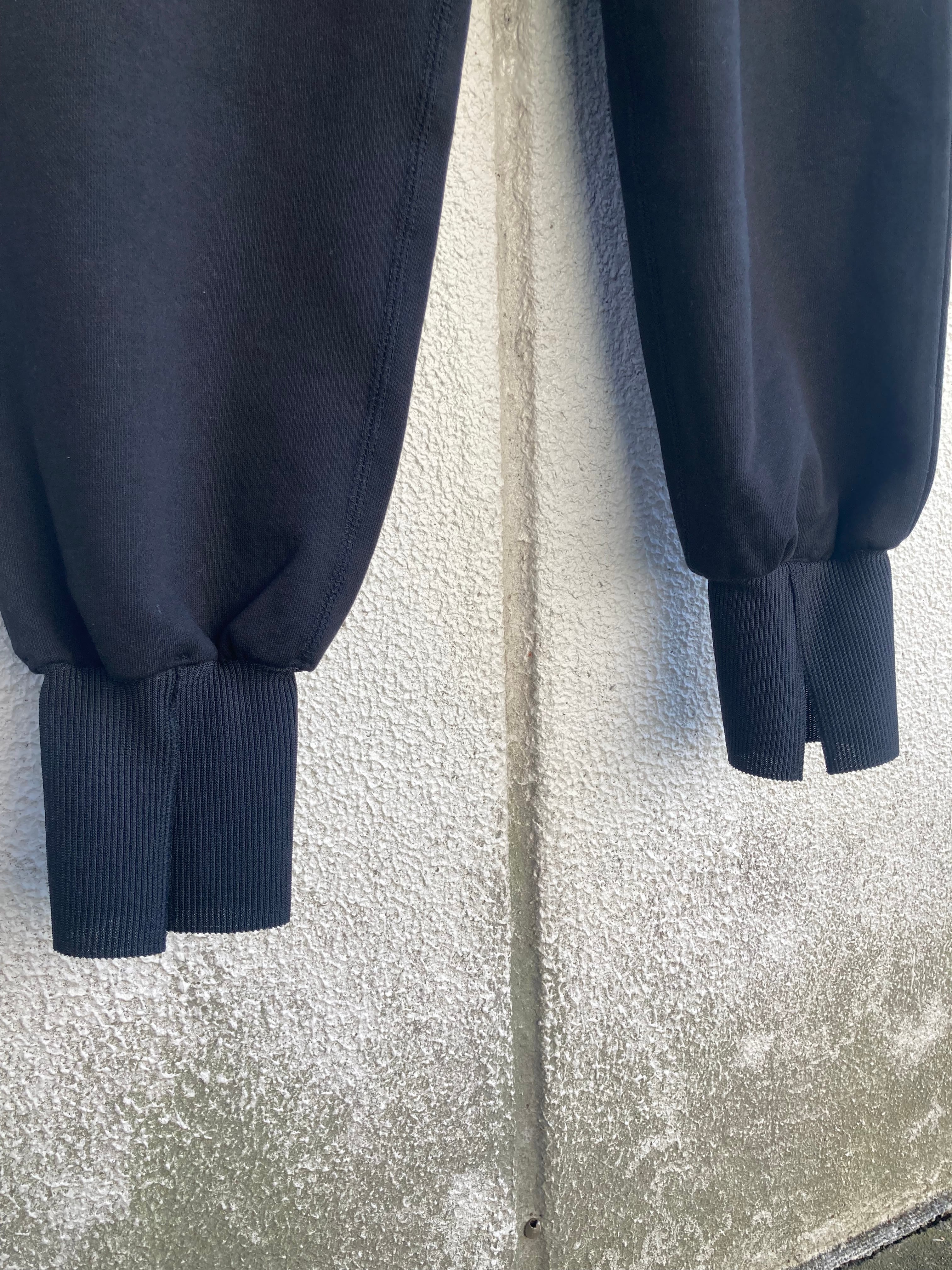 長め裾リブ前面にスリットの入ったスウエットパンツ。