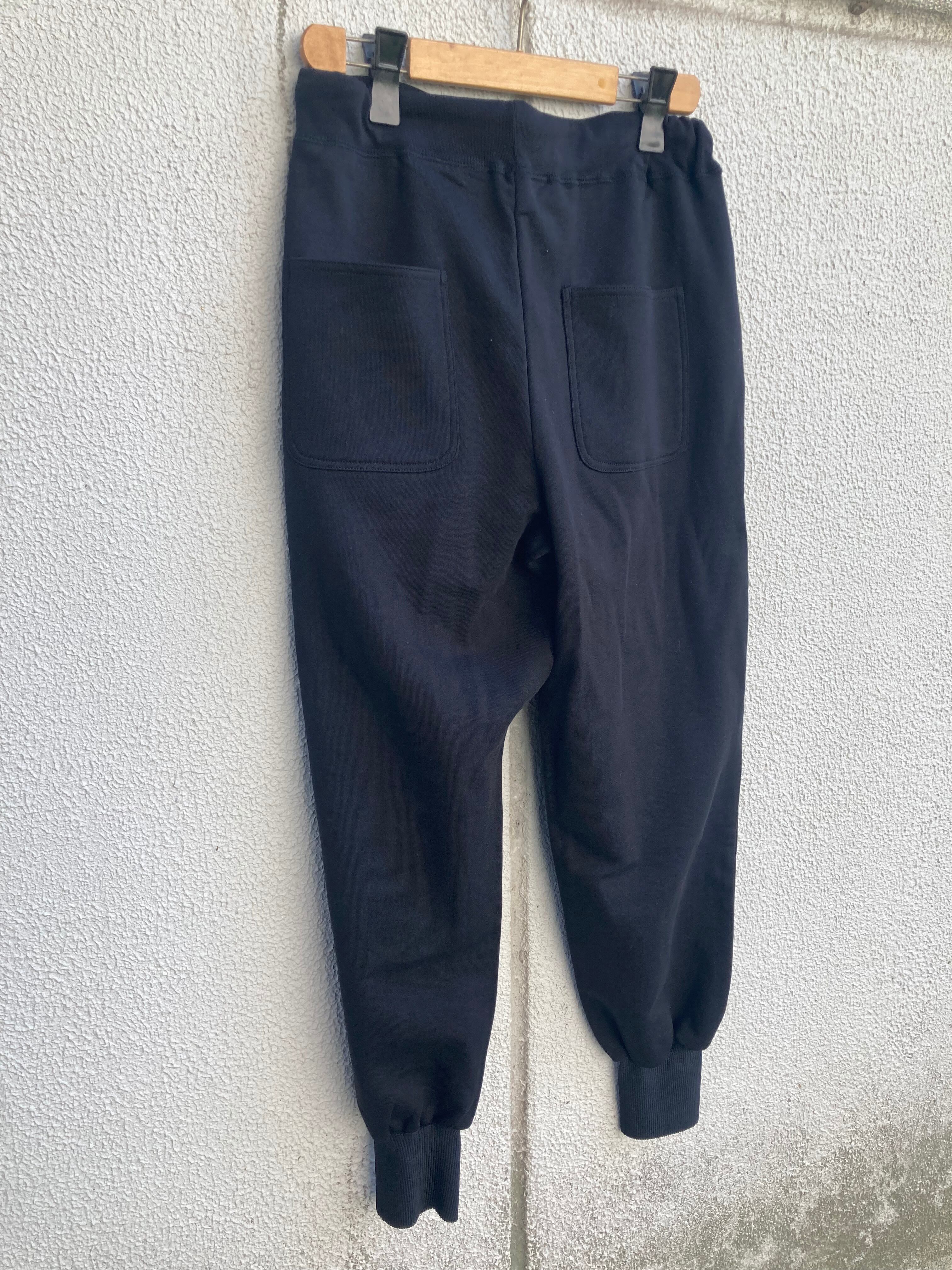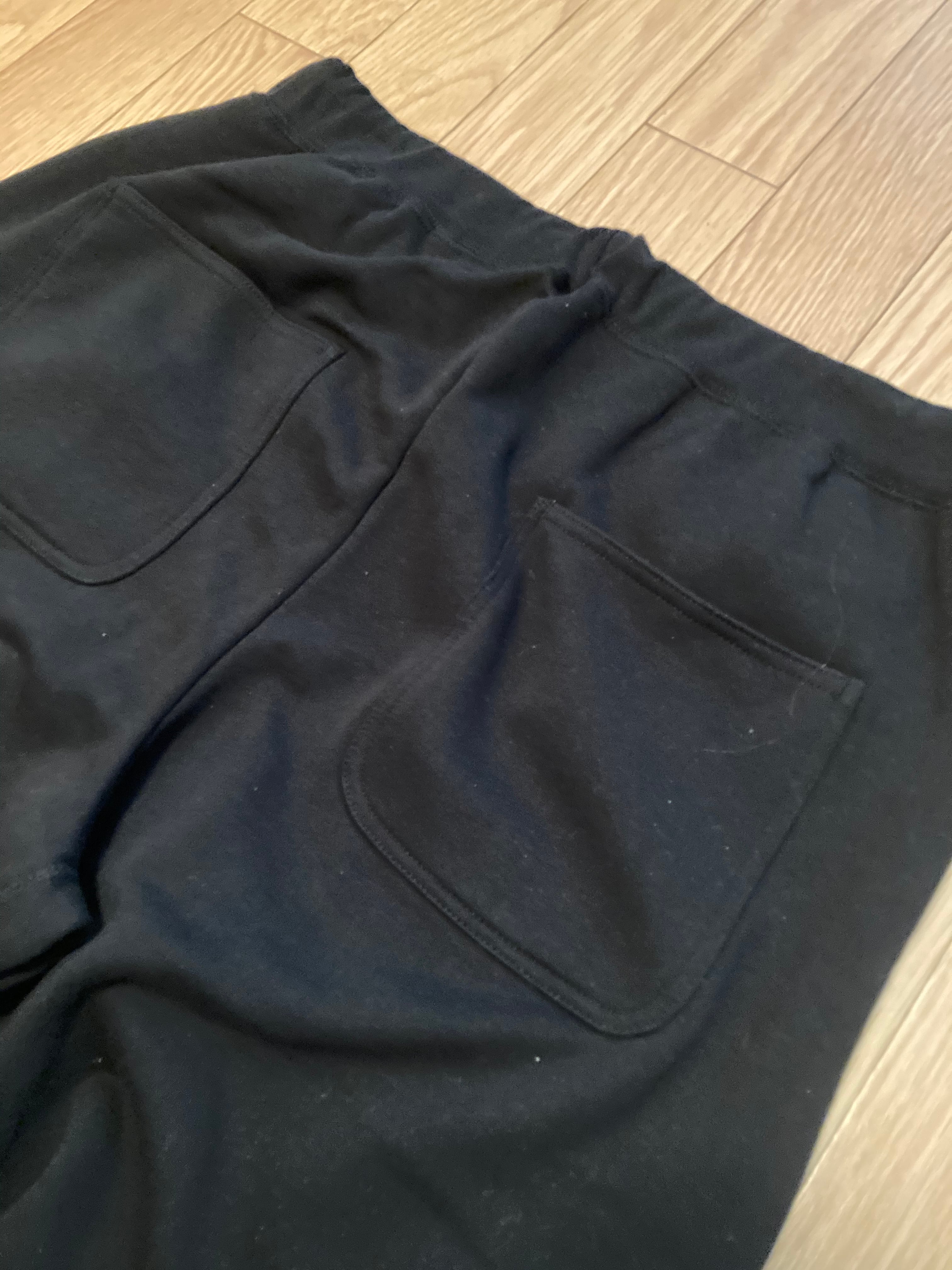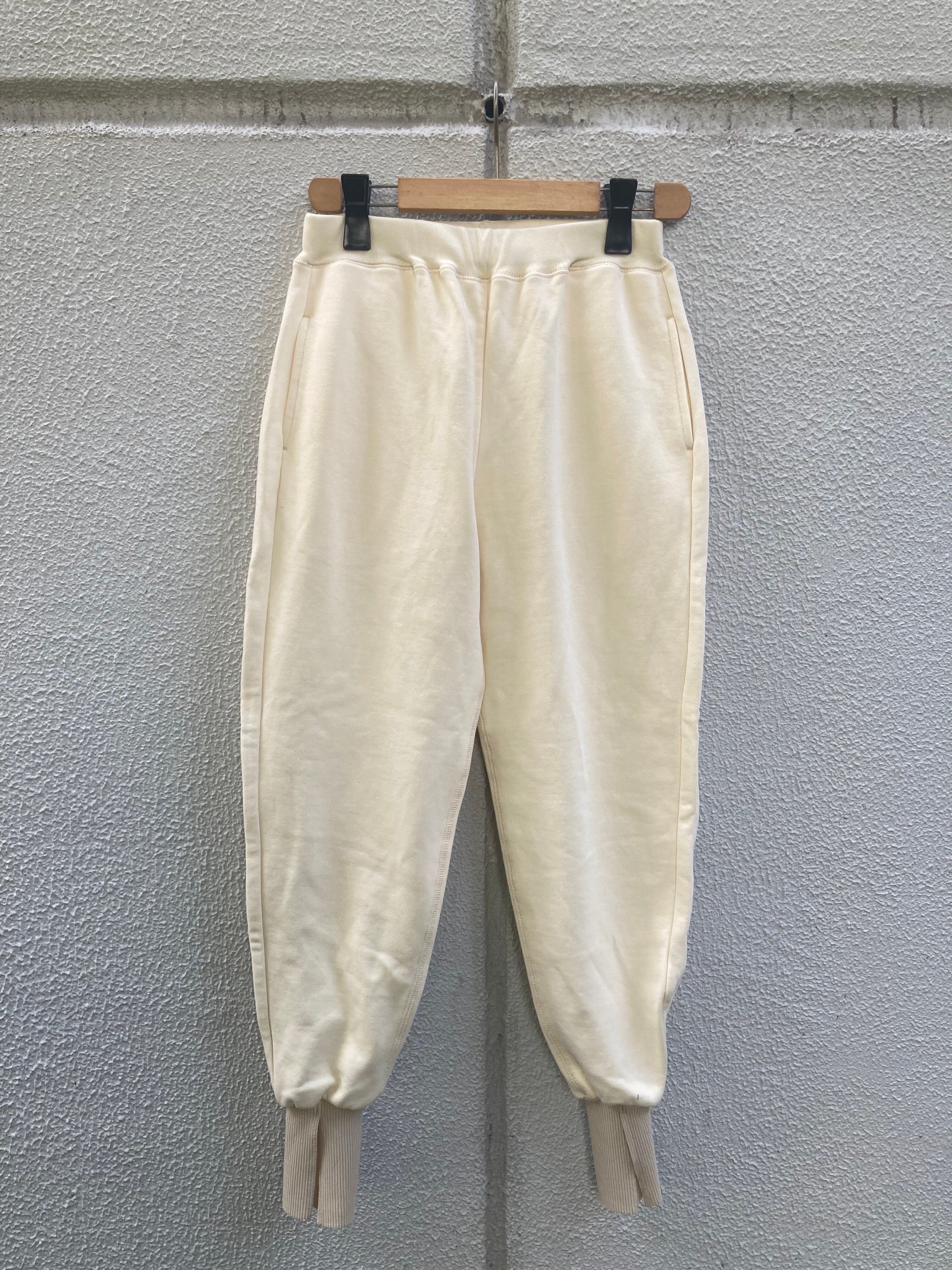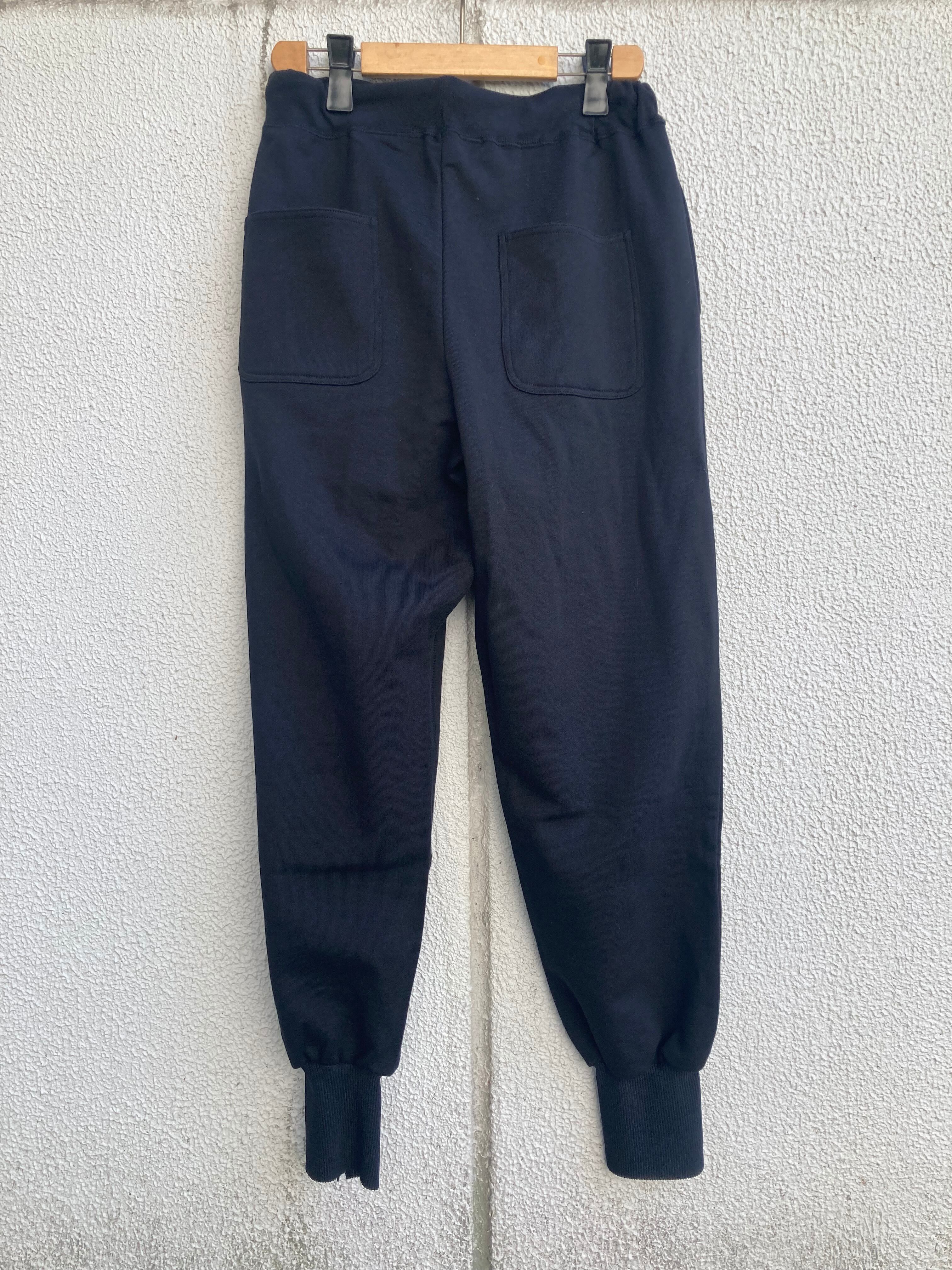 長め裾リブ前面にスリットの入ったスウエットパンツ。