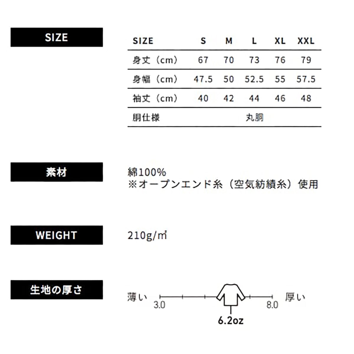 6.2 oz オープンエンド 3/4スリーブ