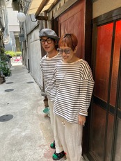 *ドロップショルダーの為首から袖口までの寸法を計測しています。