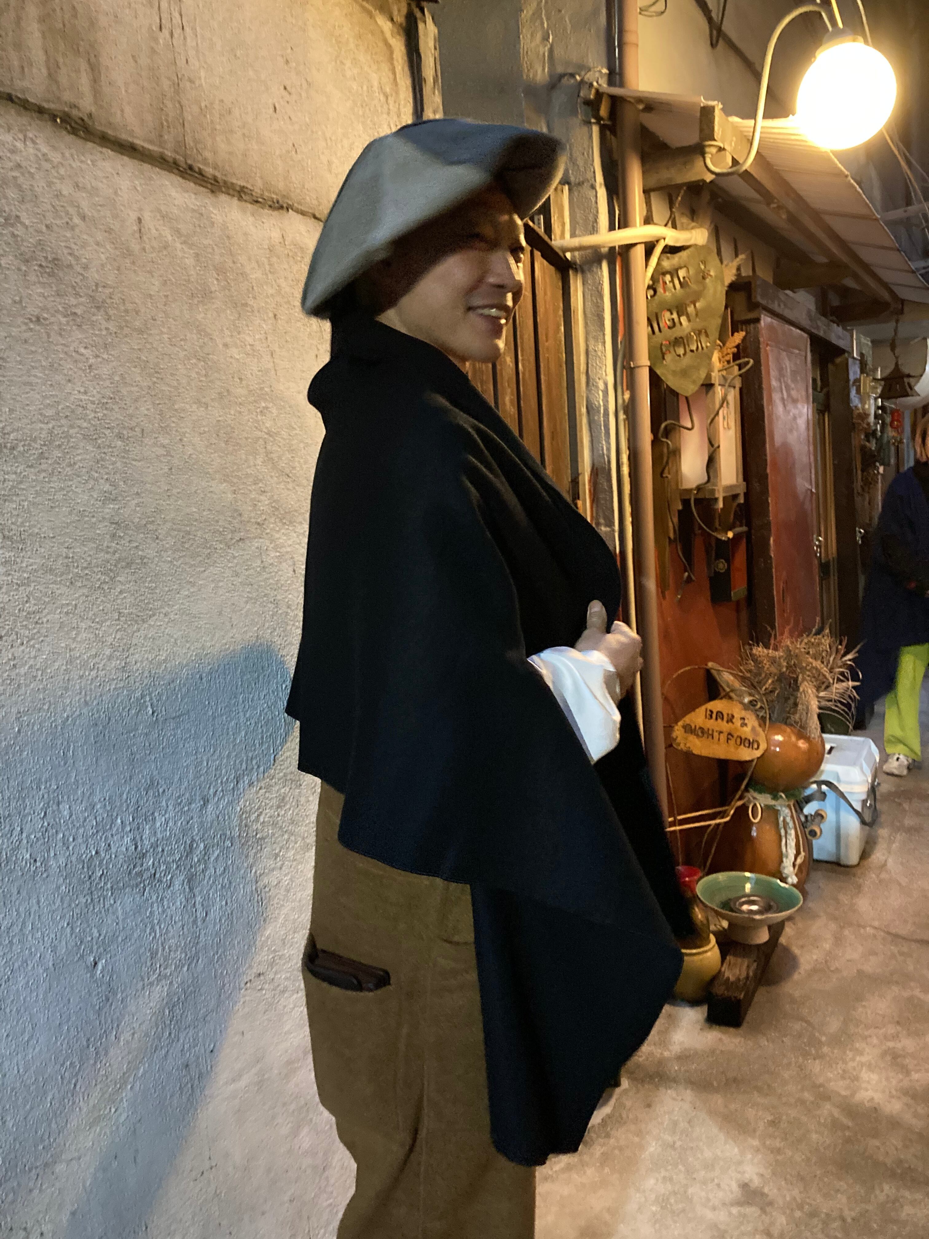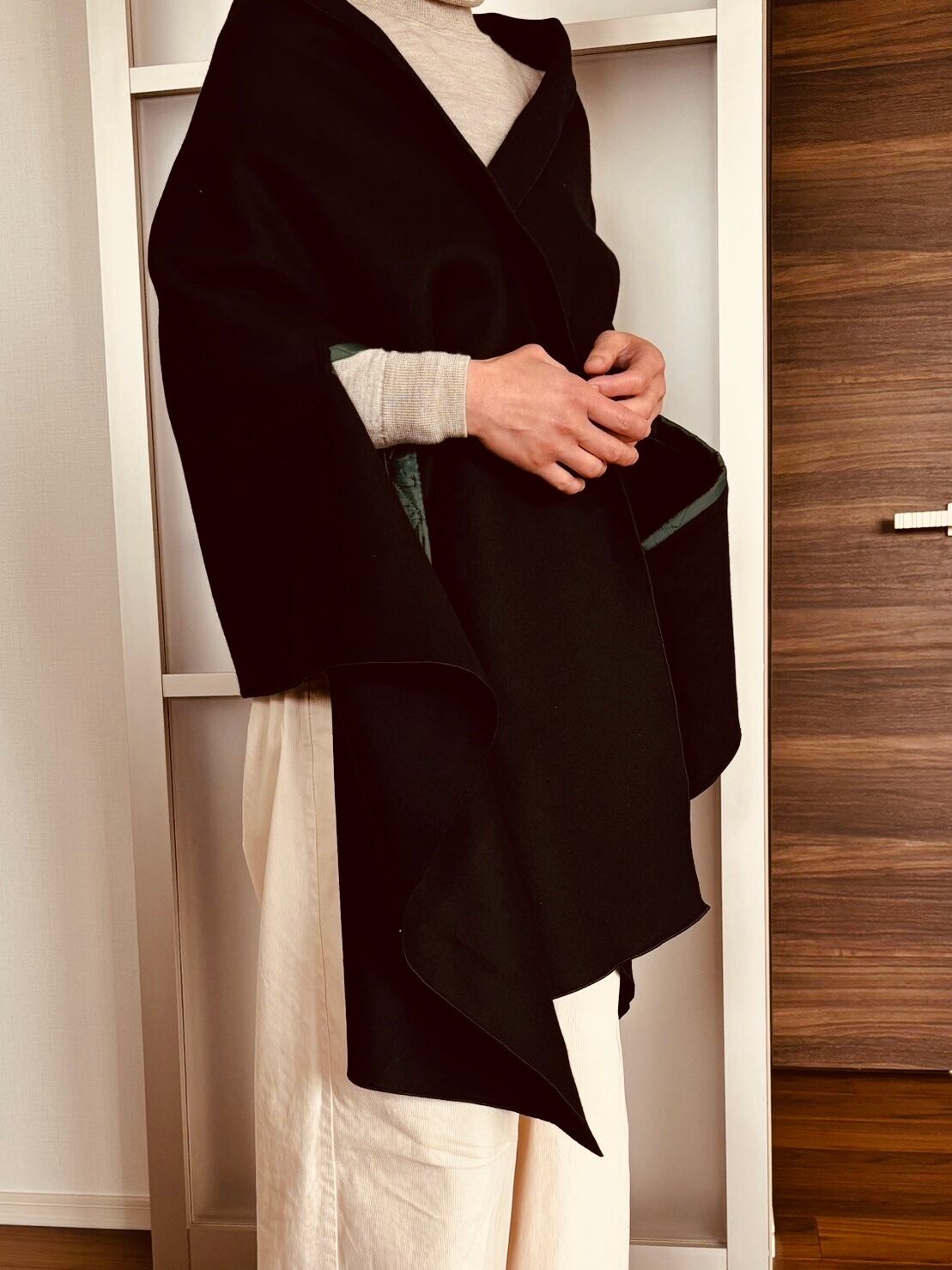 腕が通せる大判のストール。
