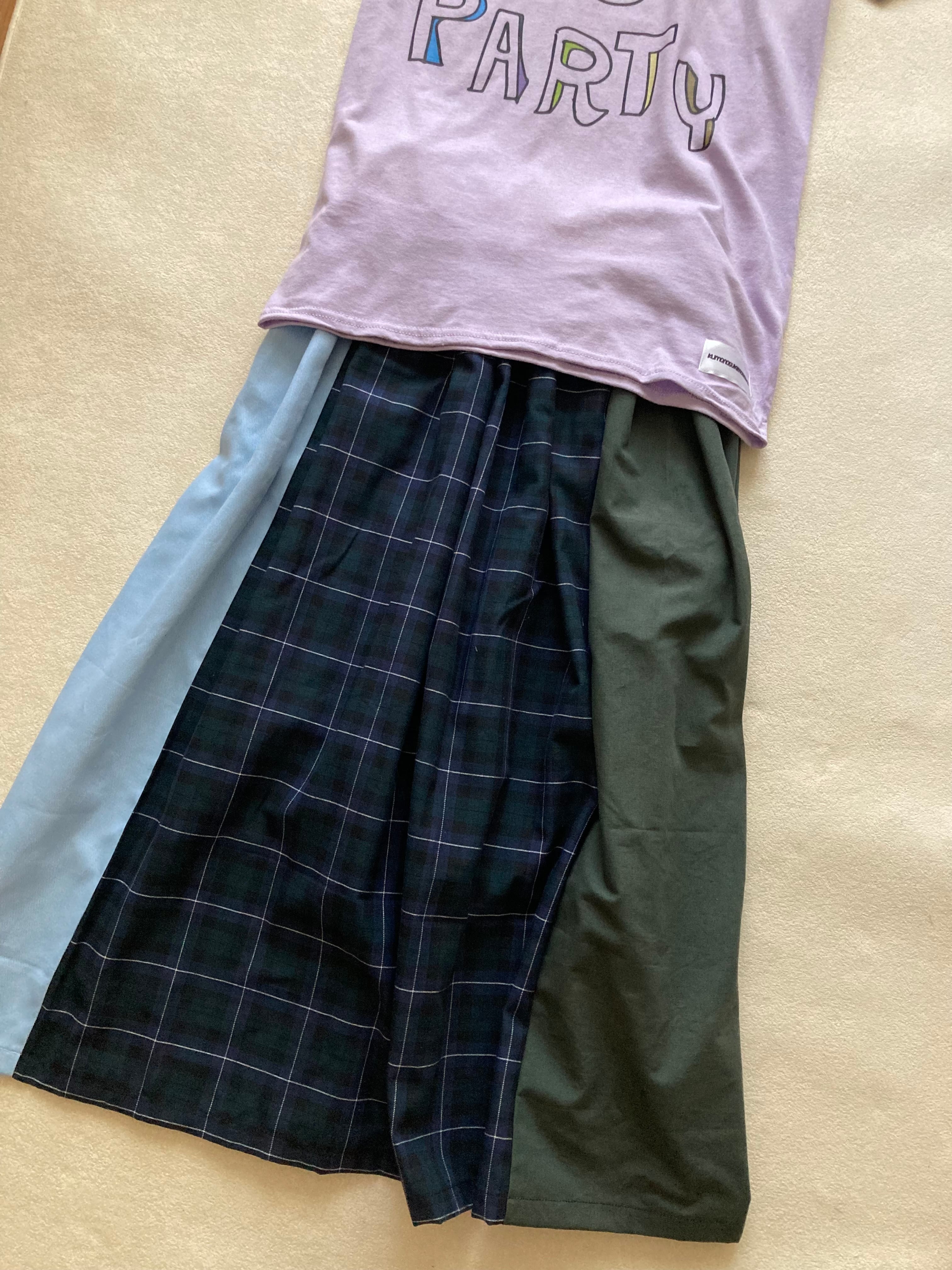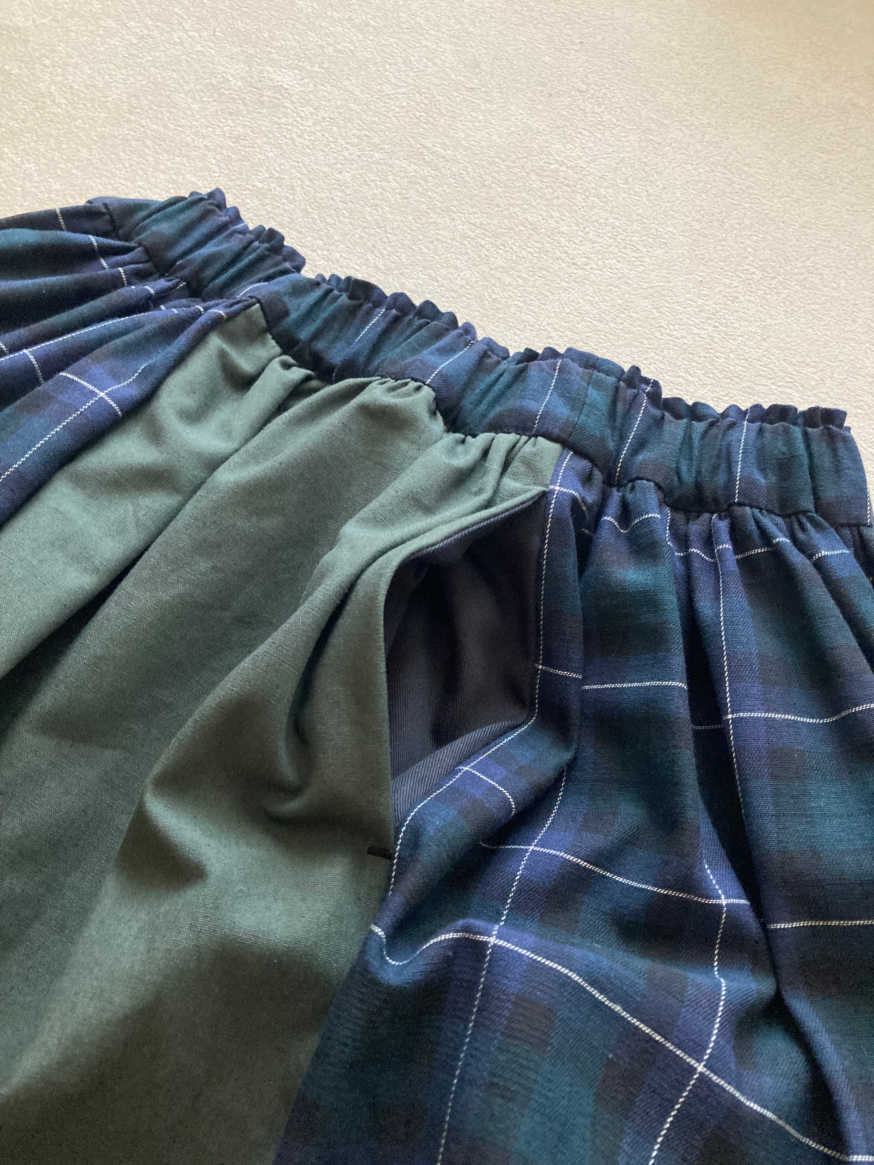 生地の切り替えは相対するような組み合わせですが調和された仕上がりです