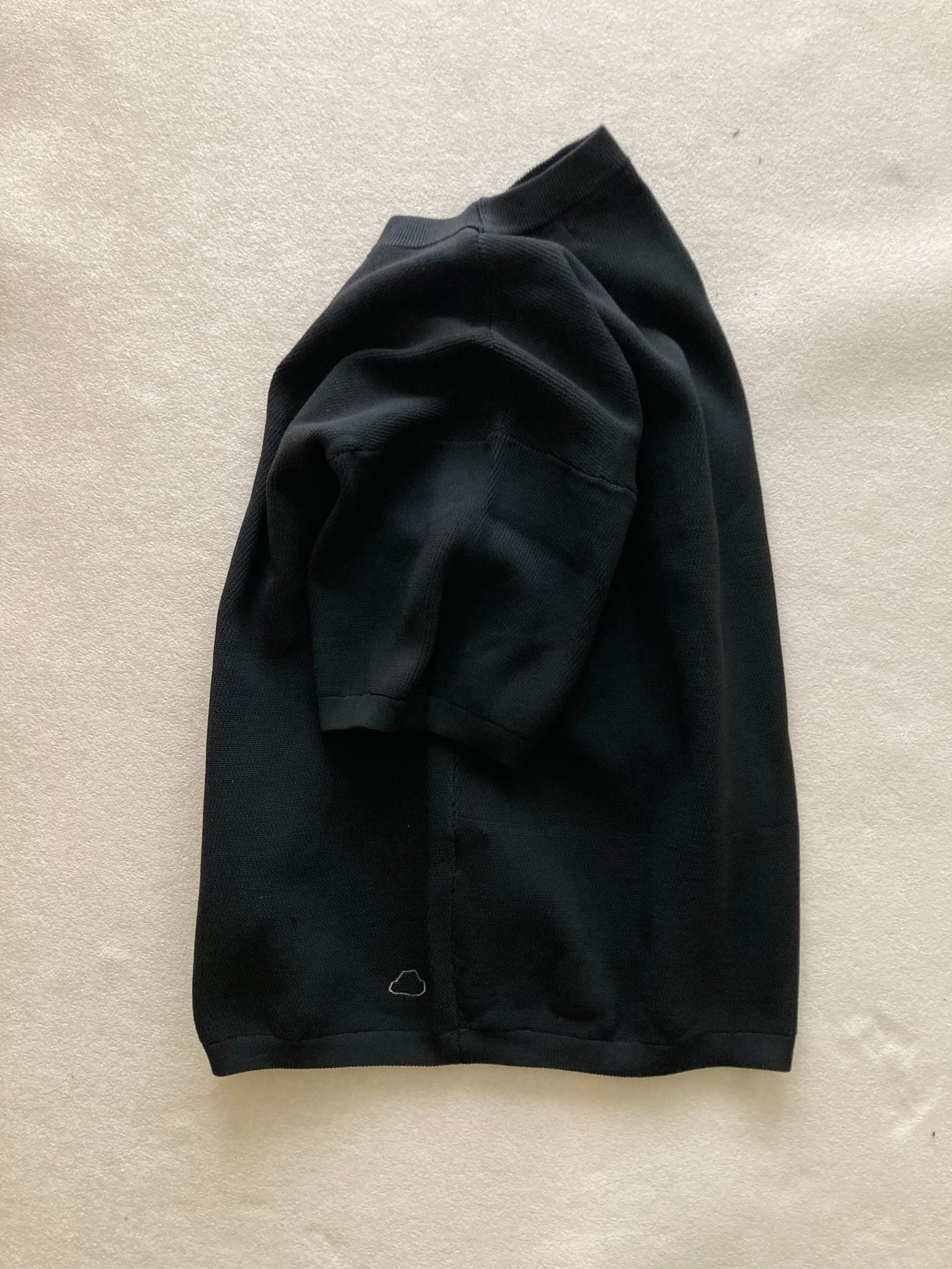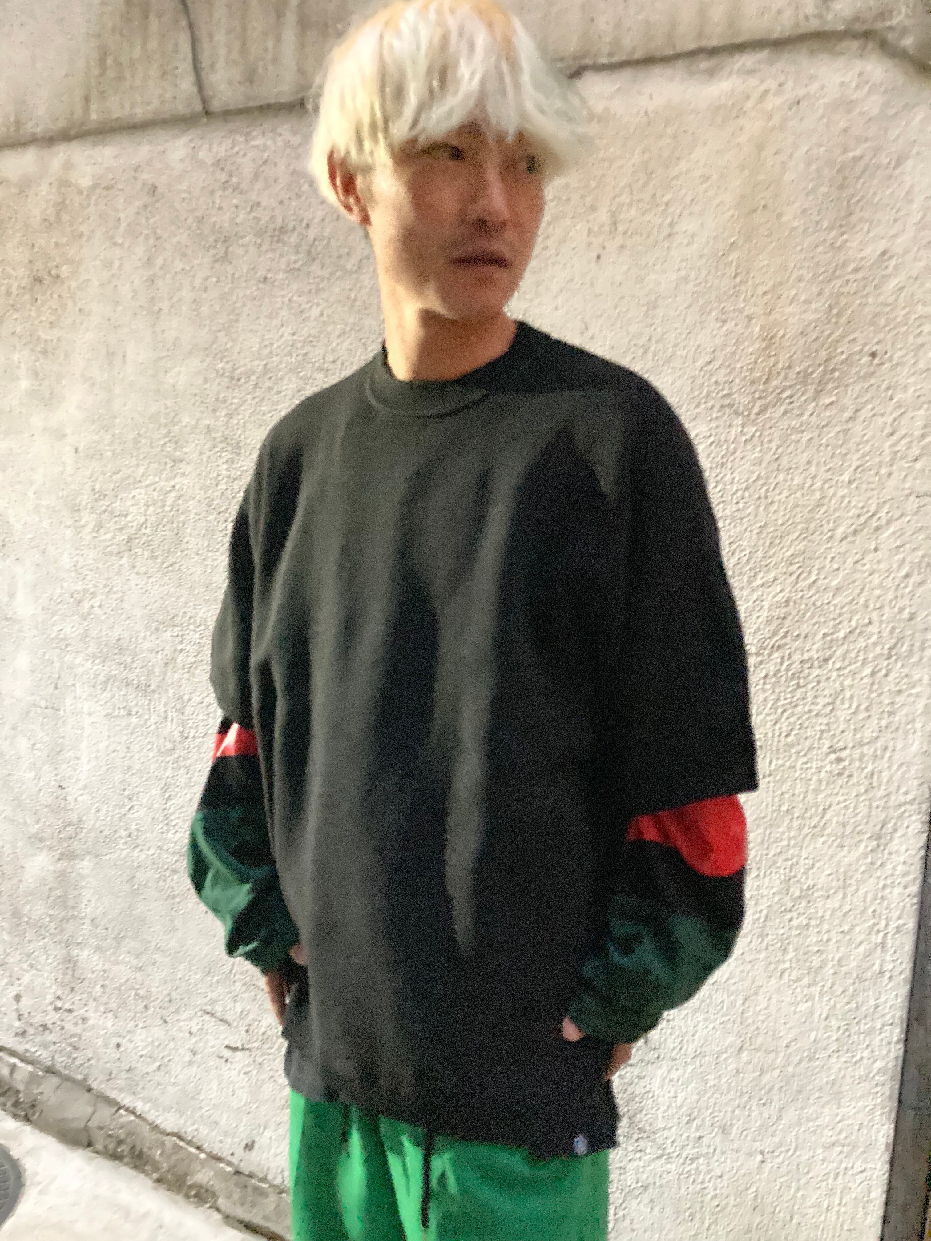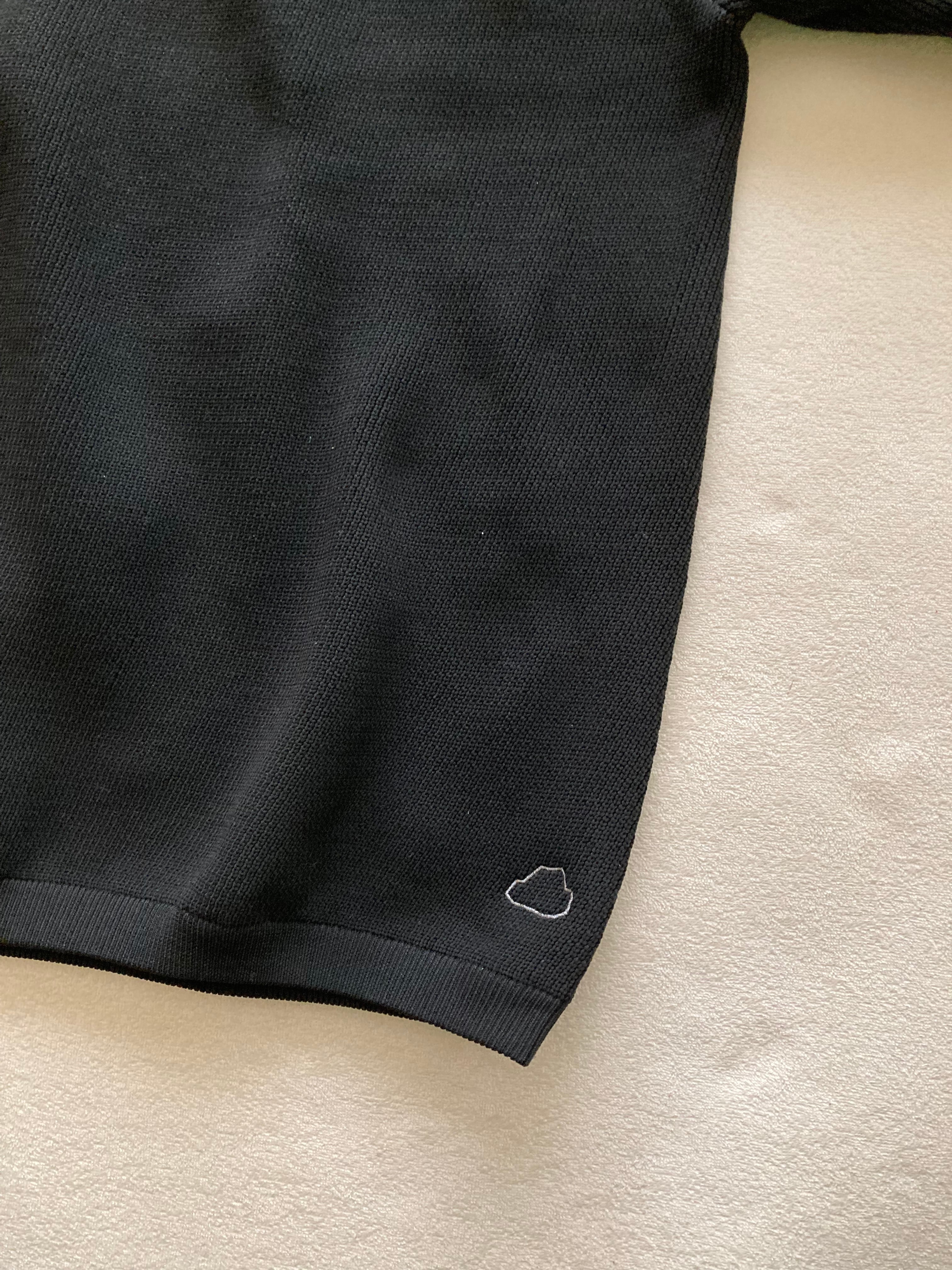襟部分の他に、裾や袖口部分もリブ編みで切り替えて、ラフなシルエットに程よいアクセントがプラスされています