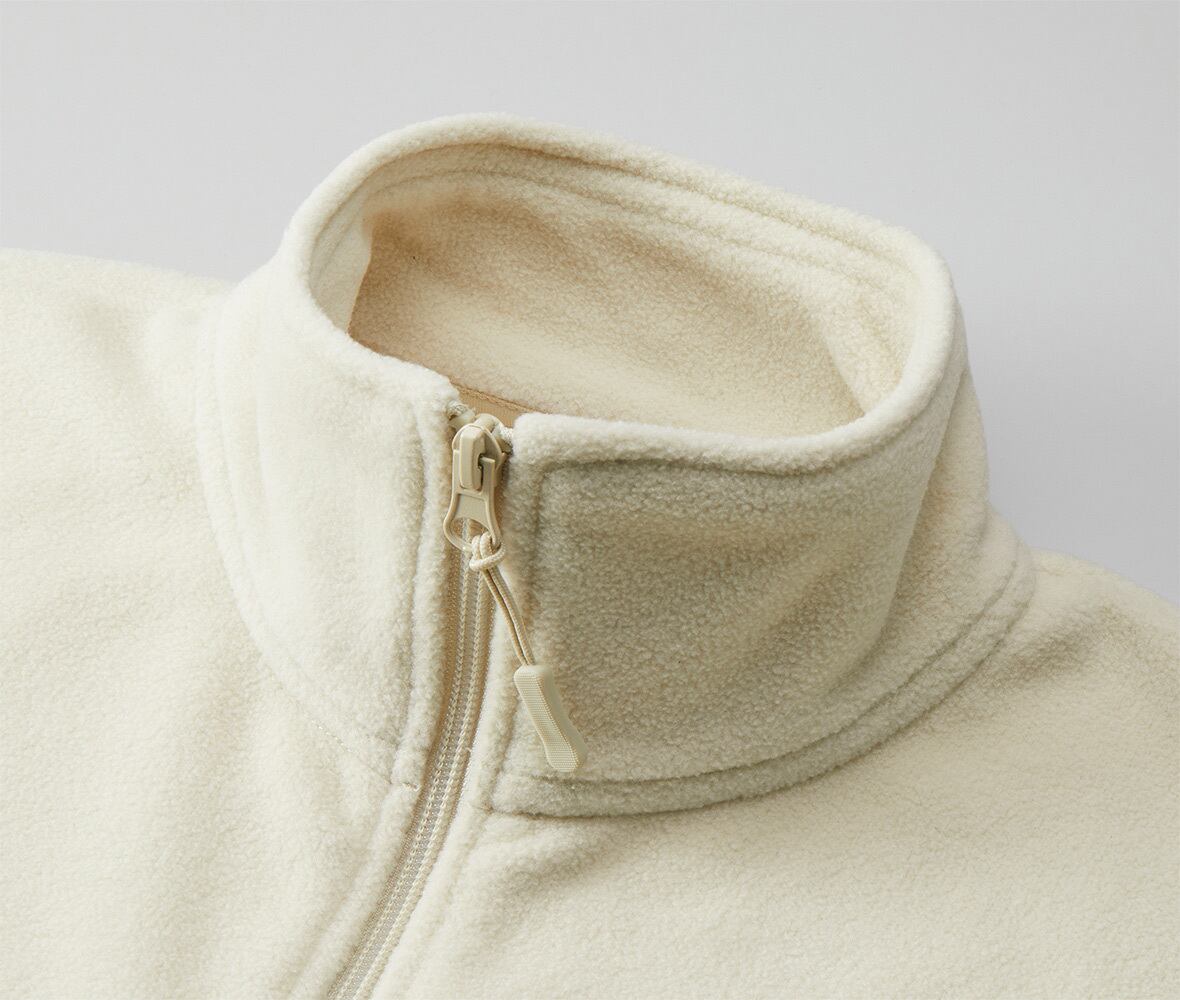 機動性の高さを担保しながらも、胸もとや背中をカバーし、体を芯からあたためるアイテムです。シャツやスウェットなどとのレイヤリングがしやすい厚みと軽さなので、寒い時季のミドルレイヤーとしても最適。